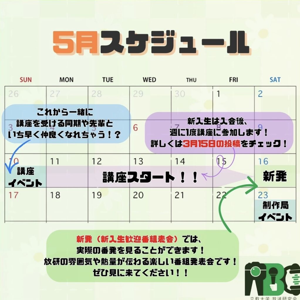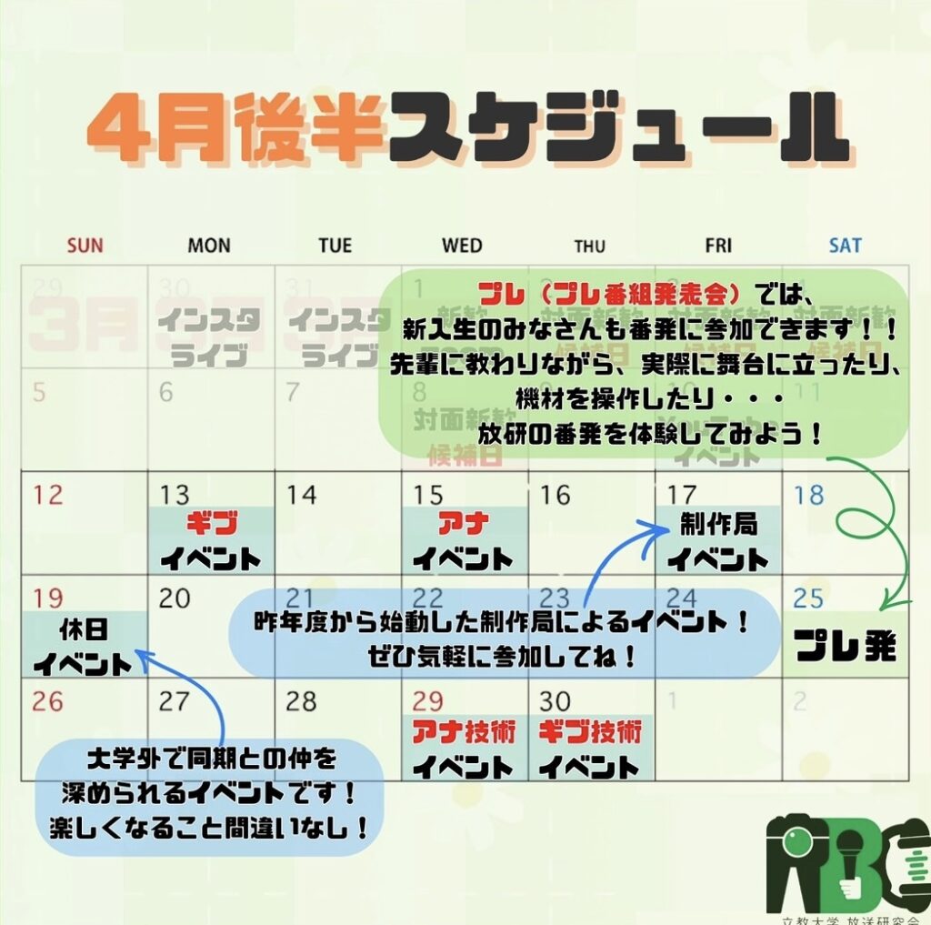 新歓イベントカレンダー