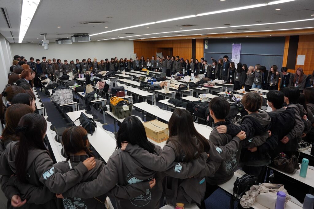 このイベントは、1年生が主体となって企画・制作する初めての番組発表会。2・3年生が観客として見守り、会場は大いに盛り上がります。